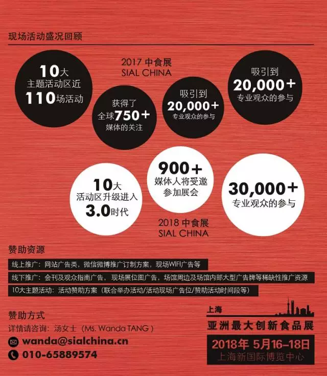 經(jīng)過19年在中國的發(fā)展,SIAL China中食展已經(jīng)成為亞洲最大的創(chuàng)新食品展,2018年中食展的贊助商計(jì)劃再度起