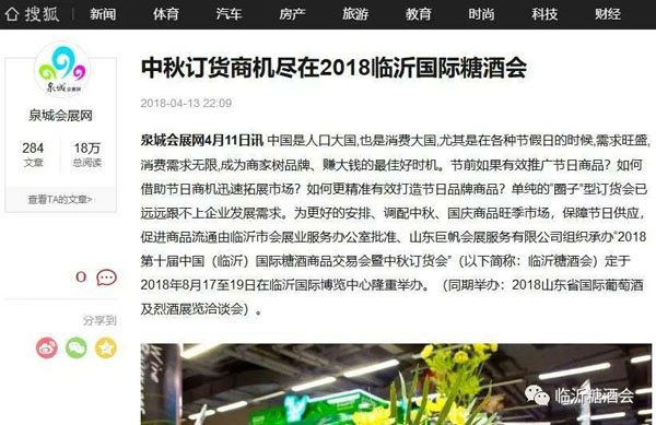 中國糖酒聯盟4月17日訊 記者從臨沂國際糖酒會組委會了解到,山東第一會展門戶泉城會展網與2018臨沂國際糖