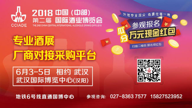 2018第二屆中國(中部)國際酒業博覽會由湖北省酒類流通行業協會、湖南省酒業協會、江西省酒類流通協會、安徽省酒業協會共同主辦,得到了四省主管部門的大力支持。2018年6月3-5日,武漢國際博覽中心(漢陽),歡迎全國各地酒企和酒業同仁來到第二屆中部酒博會開發中國中部市場,共享財富盛宴!