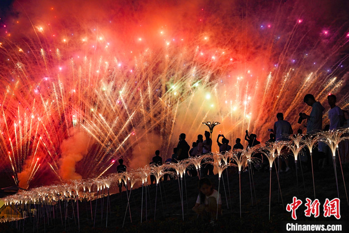 7月20日,黑龍江哈爾濱,啤酒節現場上演煙花秀。當日,第二十一屆中國·哈爾濱國際啤酒節在哈爾濱冰雪大世界啟幕。 趙宇航 攝