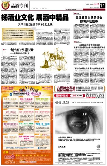 逢年過節,無酒不成禮,商務洽談無酒不誠意,快節奏的現代生活中,人們更需要注意在飲酒時樹立健康的飲酒觀念。本著健康飲酒、理性消費的理念,倡導人們健康飲酒,引導人們關注白酒自身的品質,由天津日報主辦的天津市首屆白酒品評會,將于近期隆重推出。借此良機,我們誠招有意向合作的白酒品牌,共同為振興天津酒業市場貢獻綿薄之力。活動期間,《天津日報》將刊登“受天津人喜愛的白酒候選品牌”,我們會全方位地調研,并吸納各方建議,將深受天津市民喜愛的白酒品牌一一羅列。