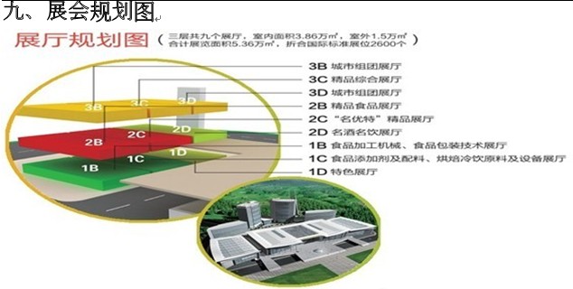 (1)“名優特”精品專廳(2)葡萄酒及國際烈酒專廳(3)進口食品專廳(4)名酒名飲專廳(5)精品食品專廳 (6)港澳臺精品專廳(7)食品加工及包裝技術設備專廳(8)食品配料及烘焙冷飲技術專廳 (9)城市組團專廳