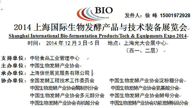 2014上海國(guó)際生物發(fā)酵產(chǎn)品與技術(shù)裝備展覽會(huì)組委會(huì)