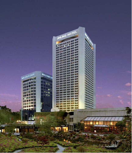 與金陵大飯店隔街相望,地處新街口商業圈。總高10 層,有6 部主電梯,3 部步行梯,總臺在4 樓。1樓、2 樓是展廳,3 樓和4 樓有部分展廳,3~10 樓為客房,共有360間客房。