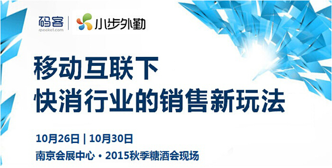 針對移動互聯時代下快消行業的營銷困局,國內外勤行為管理領先品牌小步外勤,傾情攜手移動營銷黑馬碼客,將在2015南京秋季糖酒會期間,于10月26日、10月30日兩天時間,分別舉辦兩場主題為“社交時代低成本商機獲取方式”的大型線下交流活動,希望通過此次活動幫助到會企業一舉解決找客戶、管客戶兩大難題,高效率、低成本地拓展客戶來源,借助智能手機加強過程管理,提升商機轉化率,大幅提高銷售收入。