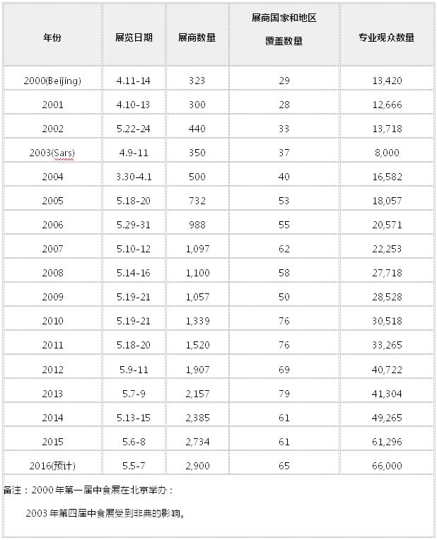 2015年展出面積達到115,000平方米(同比增長20%),中食展不僅是國內,而且也是亞洲最大的國際食品展。來自海內外61個國家的2,734家展商(同比增長14%)亮相2015中食展。