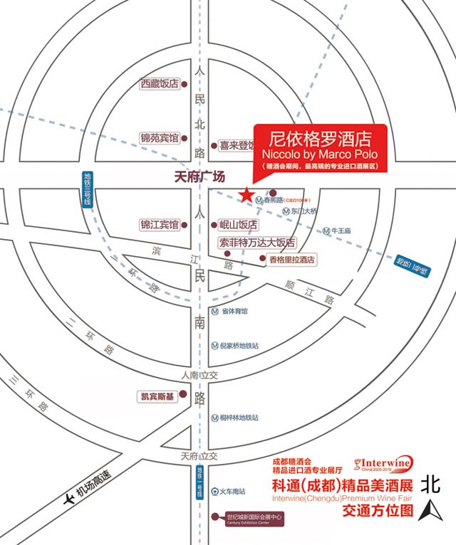 尼依格羅酒店(進口酒專區):錦江區紅星路3段1號國際金融中心3號樓,距離春熙路地鐵C出口200米。酒店為馬哥孛羅酒店集團推出的全新尊貴奢華品牌,3月21-23日科通(成都)精品美酒展,作為行業內最專業的進口酒展廳,在酒店的二、三、四、五、七、八樓同時開放。