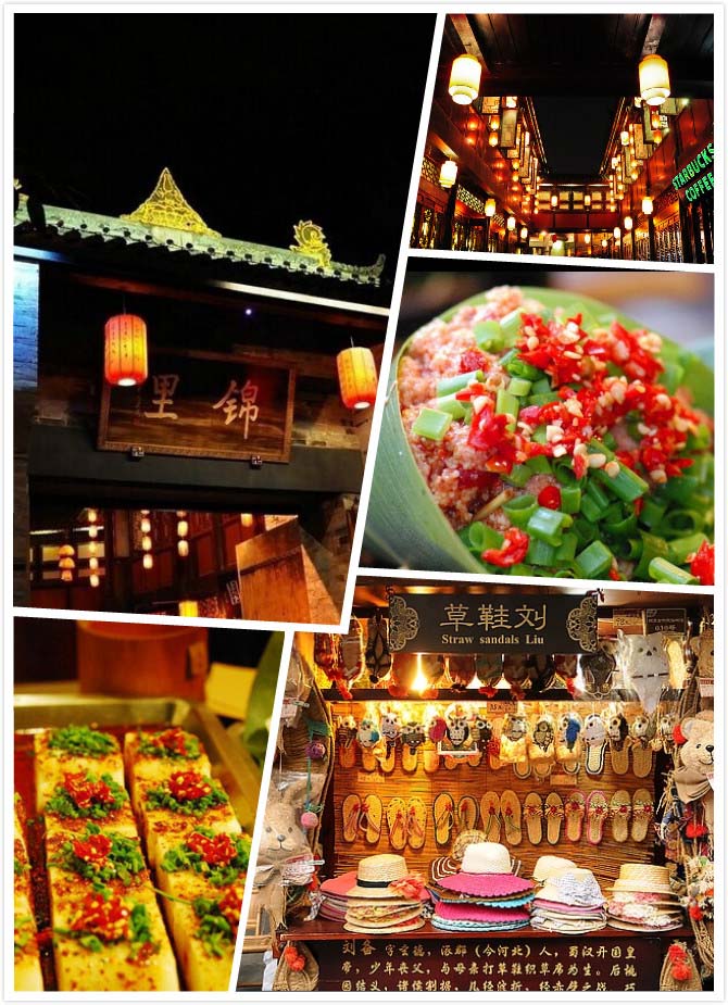 錦里依托成都武侯祠,以秦漢、三國精神為靈魂,明、清風貌作外表,川西民風、民俗作內容,擴大了三國文化的外延。在這條街上,濃縮了成都生活的精華:有茶樓、客棧、酒樓、酒吧、戲臺、風味小吃、工藝品、土特產,充分展現了三國文化和四川民風民俗的獨特魅力。