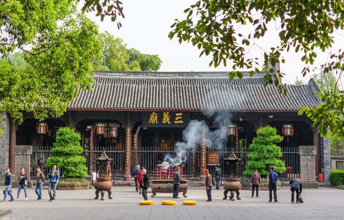 祠內供奉劉備、諸葛亮等蜀漢英雄塑像50尊,區域內還有眾多的關于諸葛亮和三國文化的碑刻、匾額等。 武侯祠的園林區,位于武侯祠西側,原是民國時期四川省主席劉湘的墓園,區域內有石牌坊大門、三洞門、四方亭、薦馨堂、墓室等建筑,是西南地區惟一一座北方風格的陵園建筑群。
