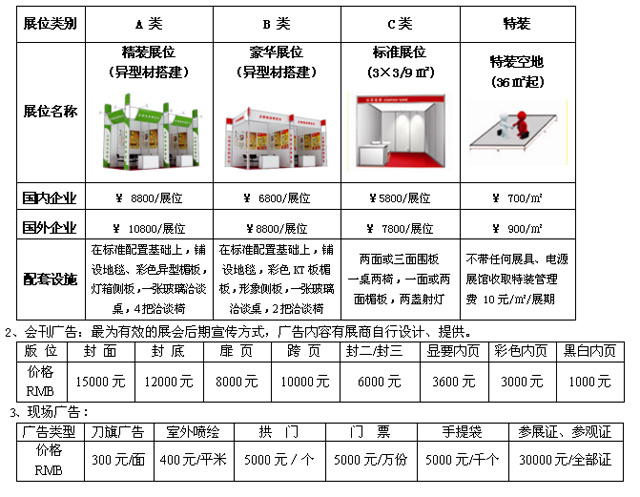 1、展位費用:注:雙面開口展位加收1000元角位費