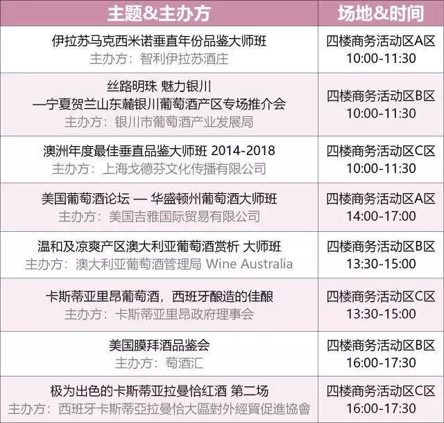 四樓是室外展區,也是整個香格里拉的論壇活動區,32場重磅大師班、品鑒會、論壇活動將刷新香格里拉人流量,巨大的商業潛力吸引了澳大利亞天鵝釀酒集團、深圳萬達、曼達國際、健力仕酒業、BODEGAS ONTAÑÓN, S.L.望隆酒莊、JJ Global Sourcing Limited等知名國際品牌及進口商。