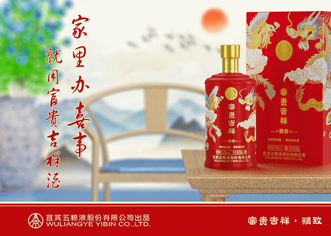 富貴吉祥酒,是宜賓五糧液股份有限公司出品的濃香型白酒,是為弘揚中國傳統吉祥文化,滿足消費者對美好生活的需求,精心打造的國民喜酒。